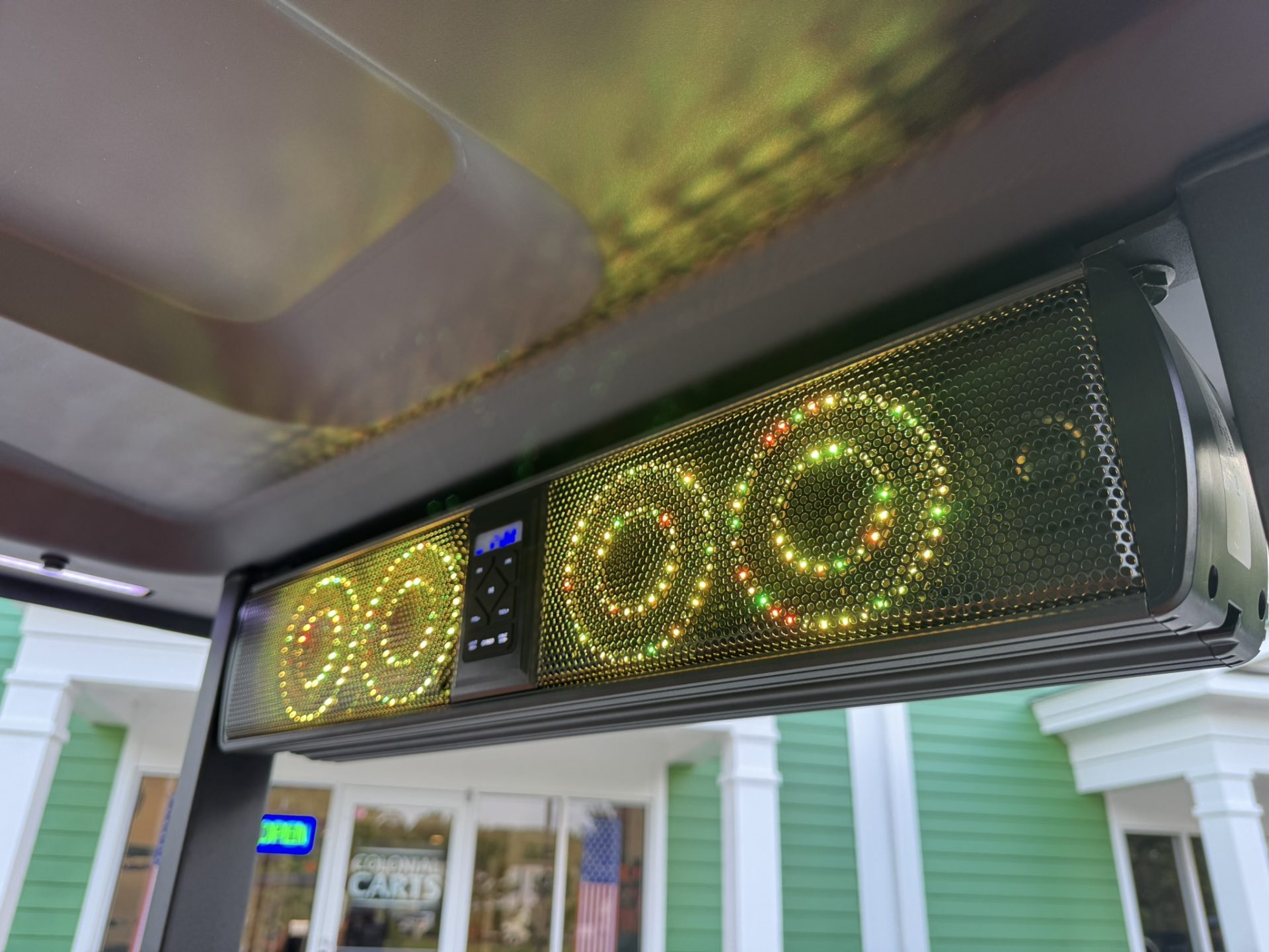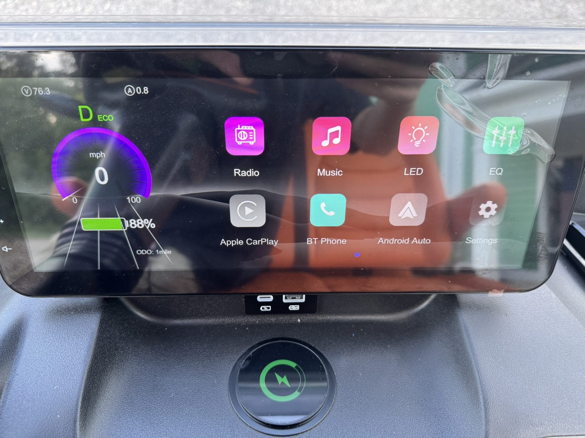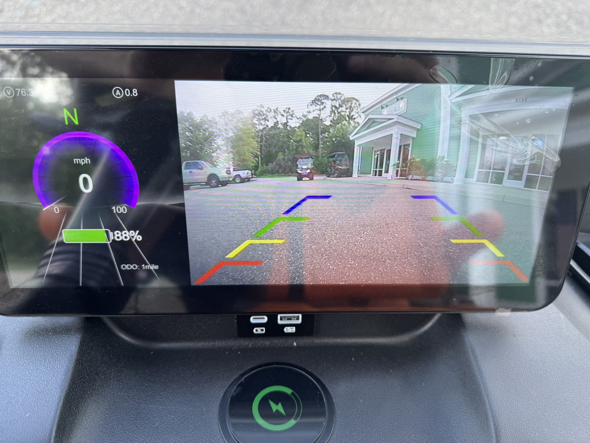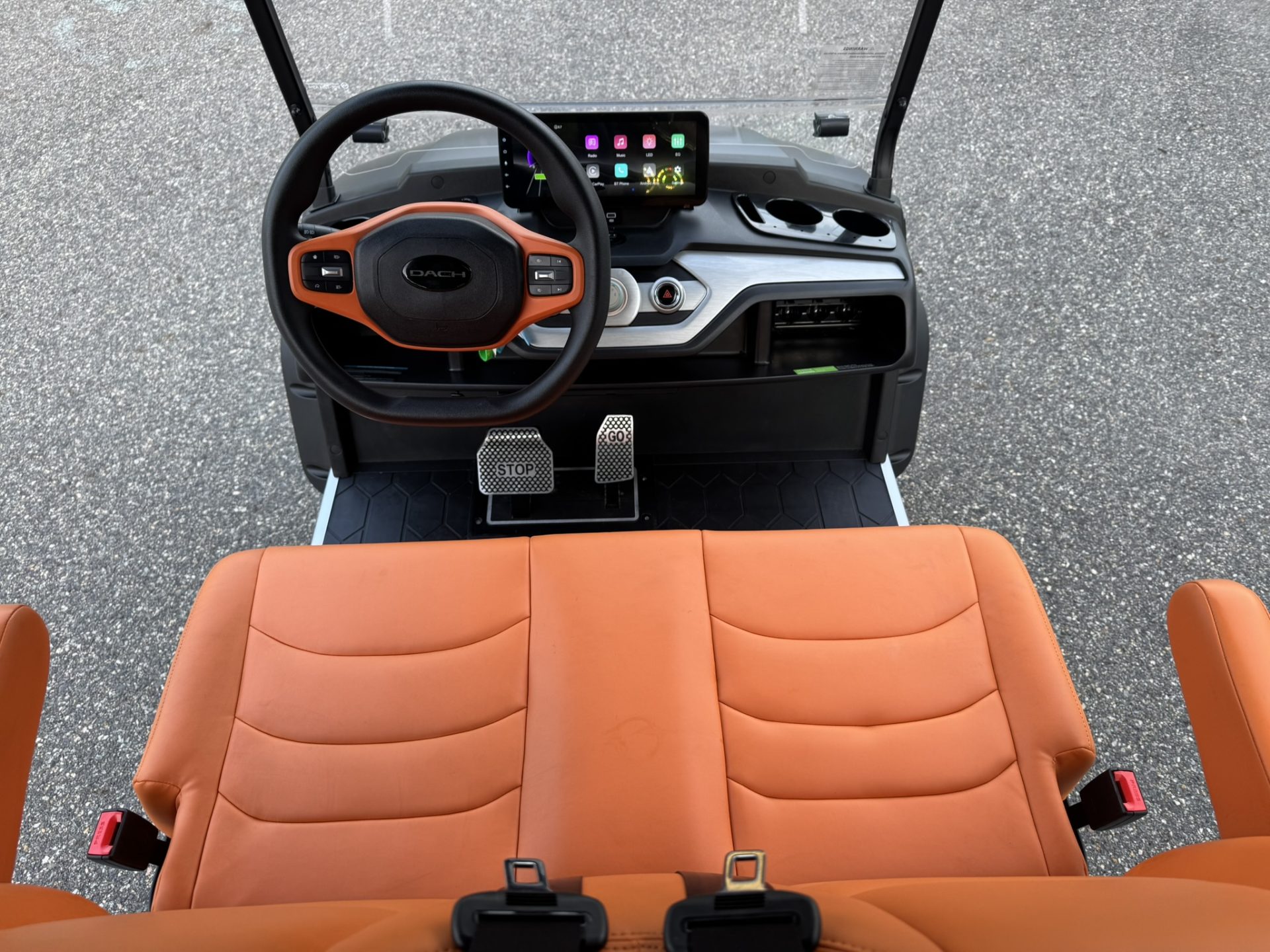 4 Passengers All Seats Facing Forward 73.6V 105AH LiFePO4 Battery and Charger Cruise Control & Intelligent Steering Wheel Automotive Level Monocoque Frame Entertaining Rooftop Tilt steering wheel Self Canceling turning signal Wireless Charging Acrylic Fold-Down Windshield Safety Belts Side Mirrors with Turn Signals Independent Double-Arm Suspension Rear Axle Trailing Arm & High-Strength Spring Shock Absorber One-Piece Double Coating Chassis 12.3-inch TFT LCD Touch Display Reverse Camera LED Front & Rear Light Kit Stereo Surround Sound System Bluetooth System USB & USB-C Connections