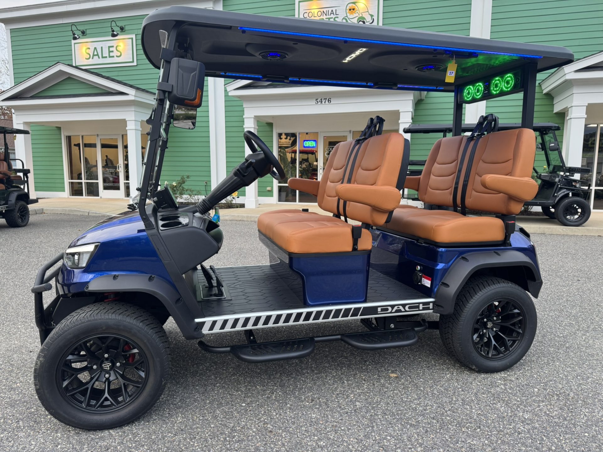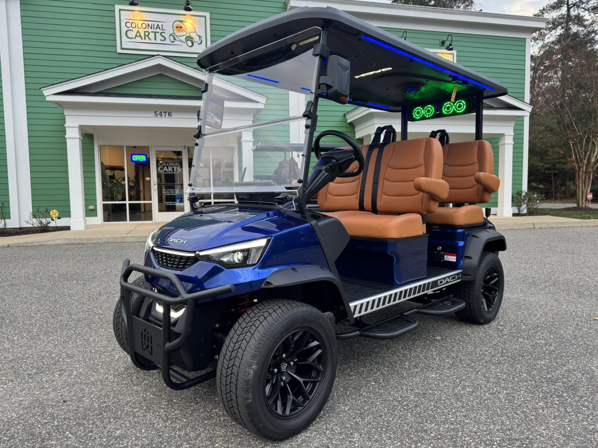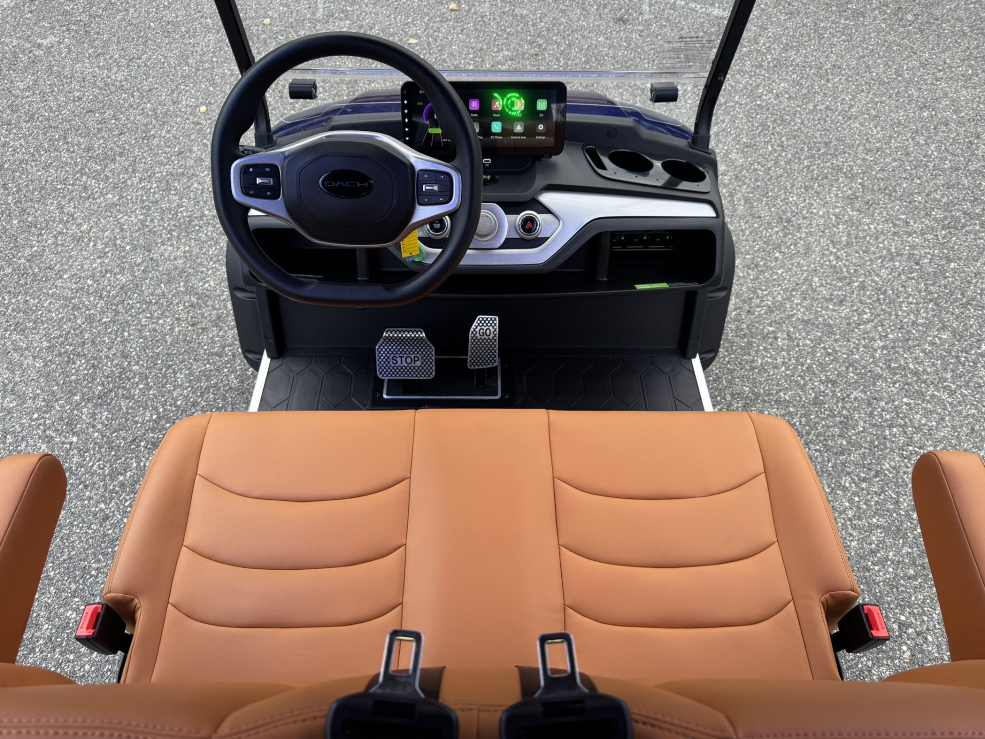 4 Passengers All Seats Facing Forward 73.6V 105AH LiFePO4 Battery and Charger Cruise Control & Intelligent Steering Wheel Automotive Level Monocoque Frame Entertaining Rooftop Tilt steering wheel Self Canceling turning signal Wireless Charging Acrylic Fold-Down Windshield Safety Belts Side Mirrors with Turn Signals Independent Double-Arm Suspension Rear Axle Trailing Arm & High-Strength Spring Shock Absorber One-Piece Double Coating Chassis 12.3-inch TFT LCD Touch Display Reverse Camera LED Front & Rear Light Kit Stereo Surround Sound System Bluetooth System USB & USB-C Connections