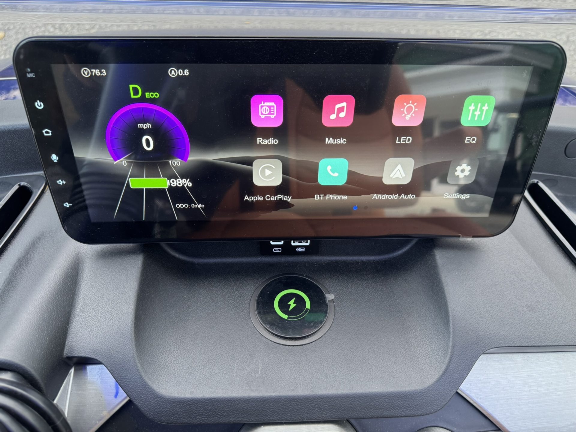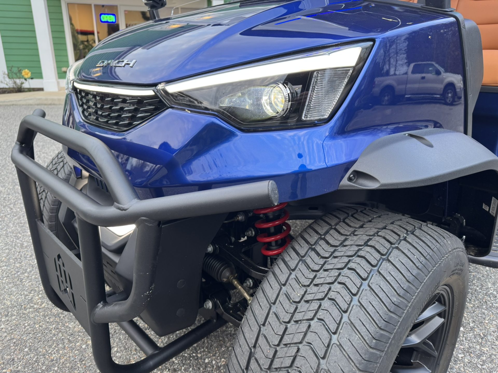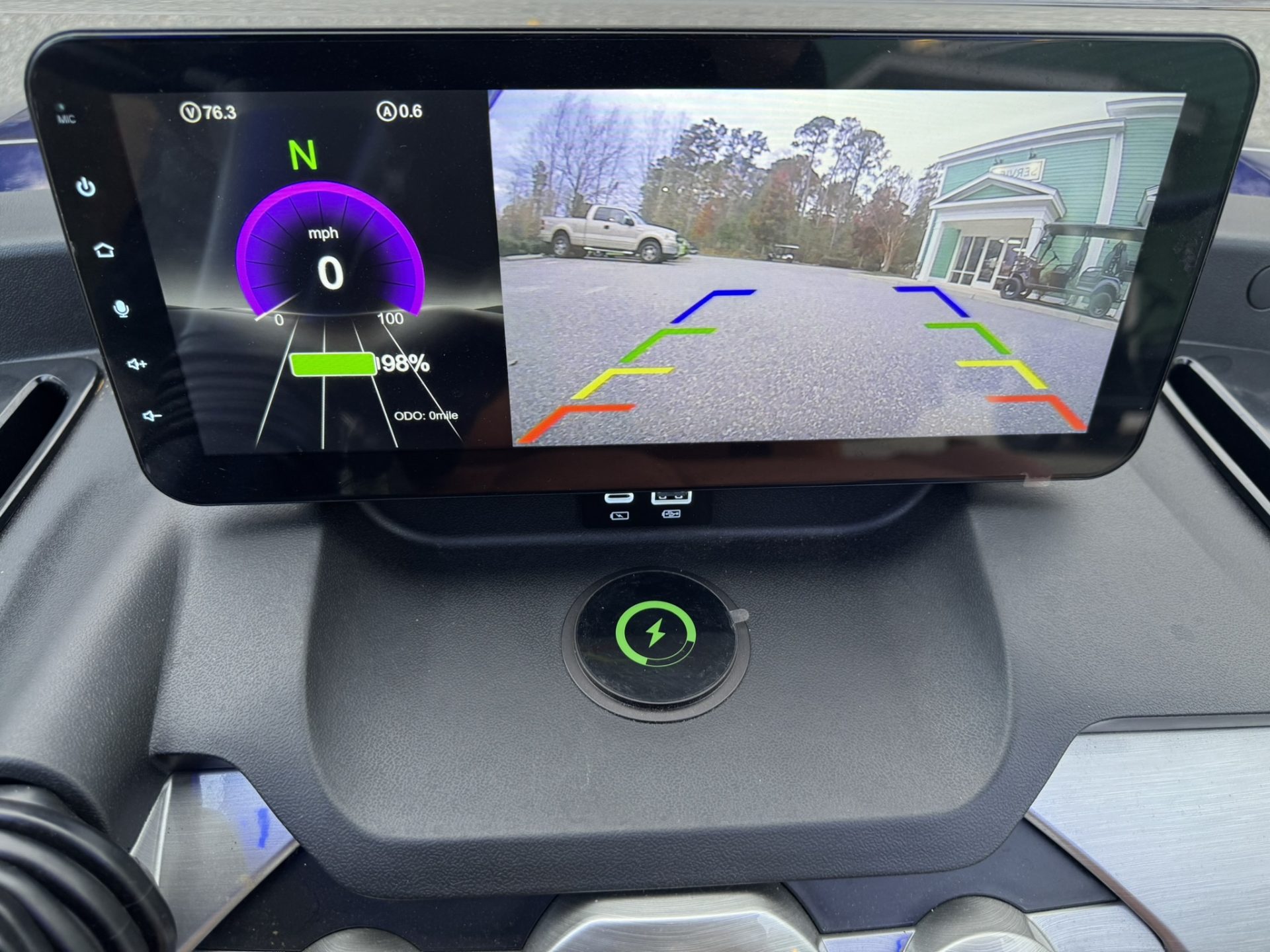 4 Passengers All Seats Facing Forward 73.6V 105AH LiFePO4 Battery and Charger Cruise Control & Intelligent Steering Wheel Automotive Level Monocoque Frame Entertaining Rooftop Tilt steering wheel Self Canceling turning signal Wireless Charging Acrylic Fold-Down Windshield Safety Belts Side Mirrors with Turn Signals Independent Double-Arm Suspension Rear Axle Trailing Arm & High-Strength Spring Shock Absorber One-Piece Double Coating Chassis 12.3-inch TFT LCD Touch Display Reverse Camera LED Front & Rear Light Kit Stereo Surround Sound System Bluetooth System USB & USB-C Connections