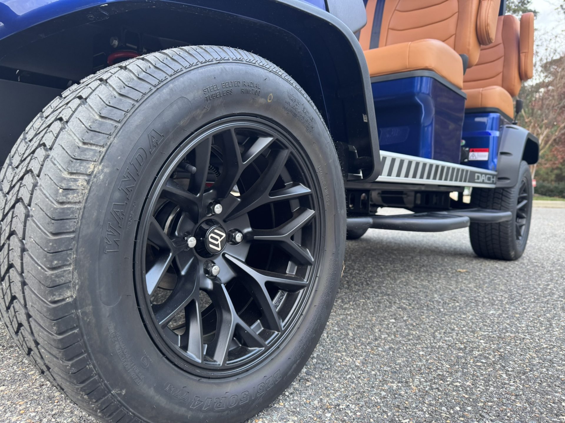 The Dach golf cart features a Monocoque Frame design, combining body and automotive