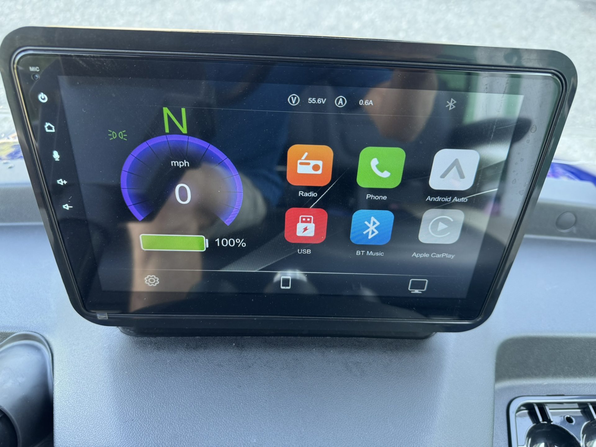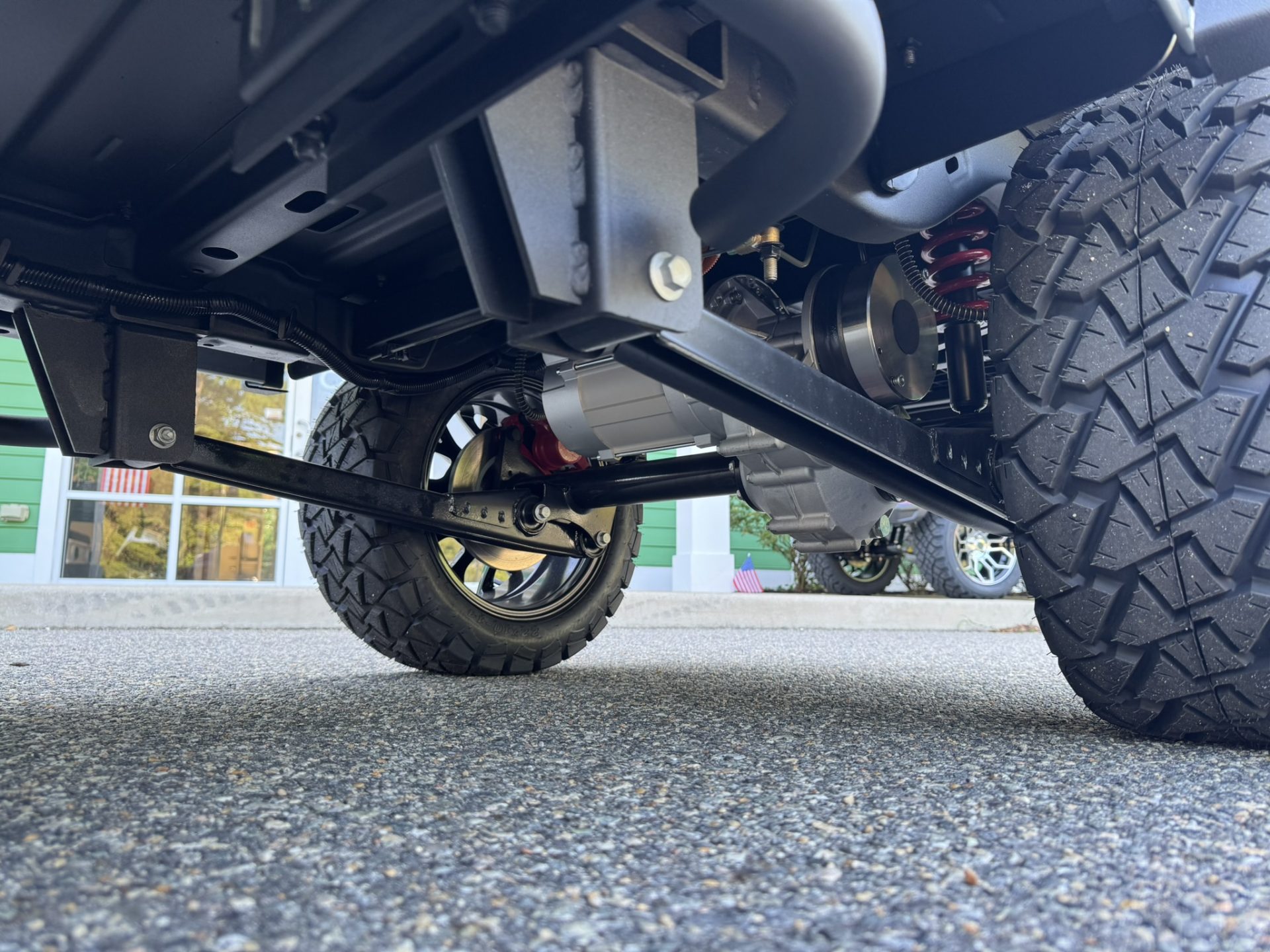 - Curb Weight 1212 lb - Overall Dimensions 114.2 x 54.7 x 80 in - Ground Clearance 5.7 in - Max Speed 25 mph - Travel Distance > 35 mi - Loading Capacity 661 lb - Wheel Base 67 in - Brake System : Front and rear hydraulic disc brakes with Automatic Parking / Emergency brake - Front Suspension: Double A-arm independent suspension + spiral spring + cylindrical hydraulic shock absorber - Rear Suspension Cast aluminum integral rear axle + trailing arm suspension + spring damping, ratio 16:1 - Tire 22/10-14, 225/30R14 - 48V 350A Controller - Battery 48V 105AH LiFePO4 - Motor 5KW Motor - On-board charger 48V 20A - DC Converter 48V/12V-500W