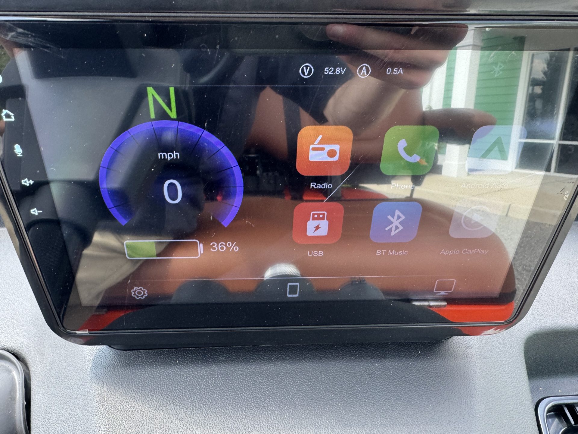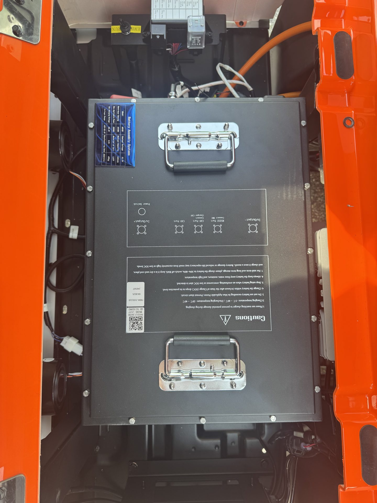 - Curb Weight 1212 lb - Overall Dimensions 114.2 x 54.7 x 80 in - Ground Clearance 5.7 in - Max Speed 25 mph - Travel Distance > 35 mi - Loading Capacity 661 lb - Wheel Base 67 in - Brake System : Front and rear hydraulic disc brakes with Automatic Parking / Emergency brake - Front Suspension: Double A-arm independent suspension + spiral spring + cylindrical hydraulic shock absorber - Rear Suspension Cast aluminum integral rear axle + trailing arm suspension + spring damping, ratio 16:1 - Tire 22/10-14, 225/30R14 - 48V 350A Controller - Battery 48V 105AH LiFePO4 - Motor 5KW Motor - On-board charger 48V 20A - DC Converter 48V/12V-500W