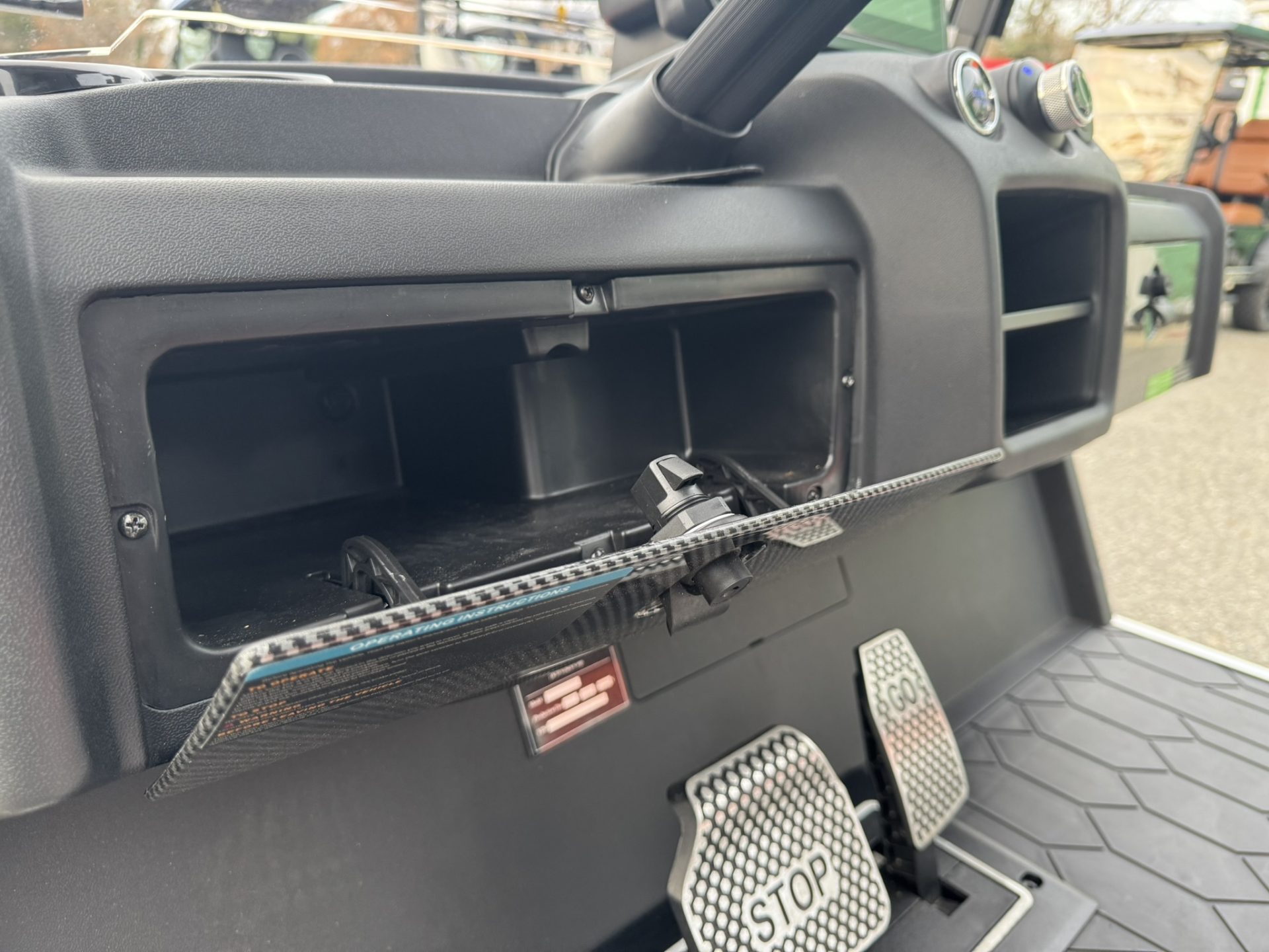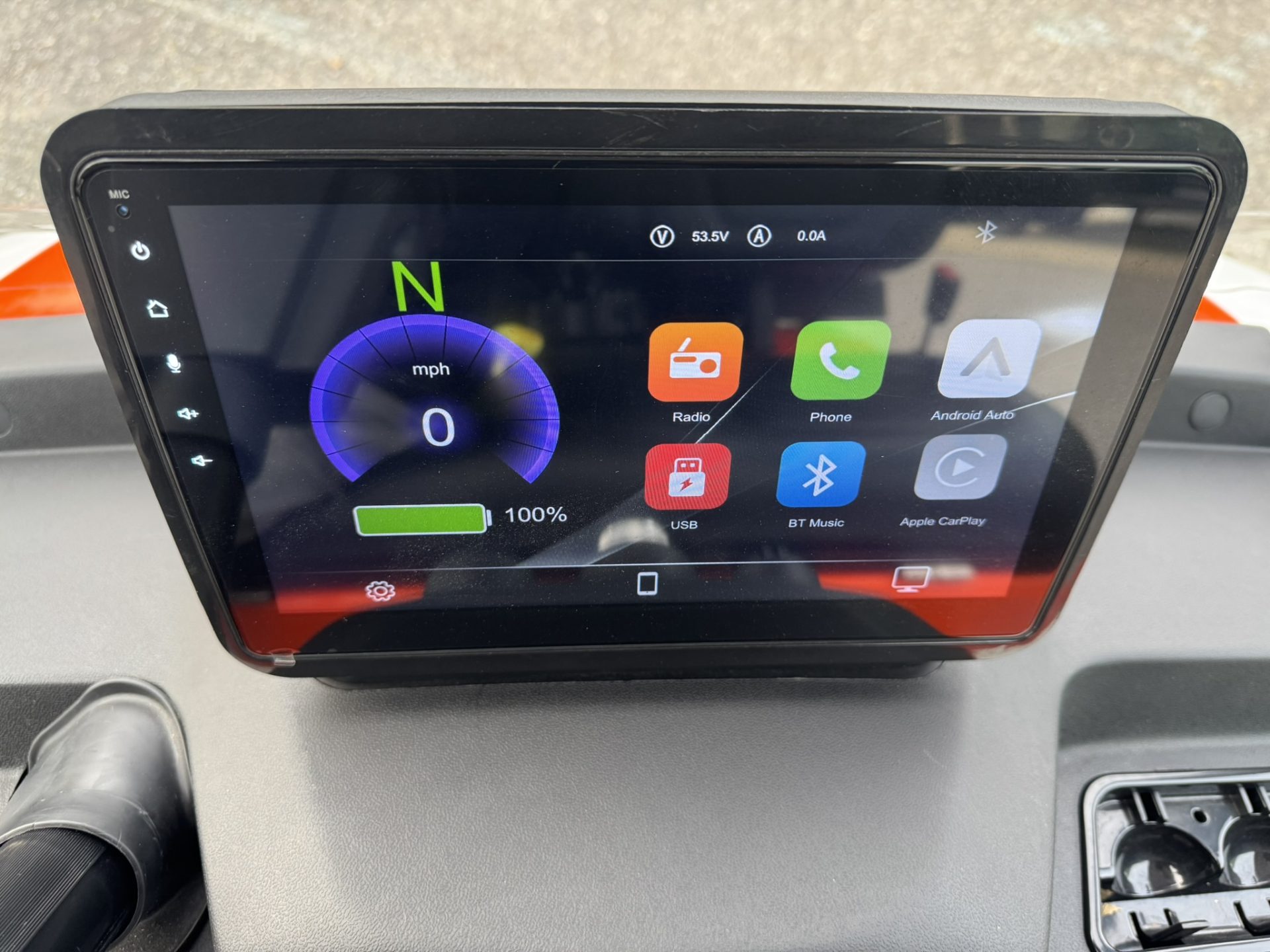 - Curb Weight 1212 lb - Overall Dimensions 114.2 x 54.7 x 80 in - Ground Clearance 5.7 in - Max Speed 25 mph - Travel Distance > 35 mi - Loading Capacity 661 lb - Wheel Base 67 in - Brake System : Front and rear hydraulic disc brakes with Automatic Parking / Emergency brake - Front Suspension: Double A-arm independent suspension + spiral spring + cylindrical hydraulic shock absorber - Rear Suspension Cast aluminum integral rear axle + trailing arm suspension + spring damping, ratio 16:1 - Tire 22/10-14, 225/30R14 - 48V 350A Controller - Battery 48V 105AH LiFePO4 - Motor 5KW Motor - On-board charger 48V 20A - DC Converter 48V/12V-500W