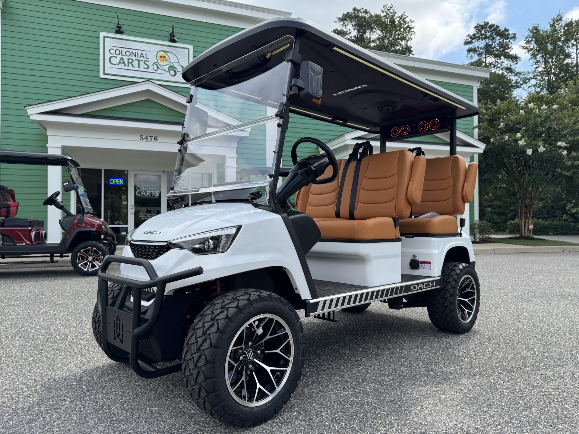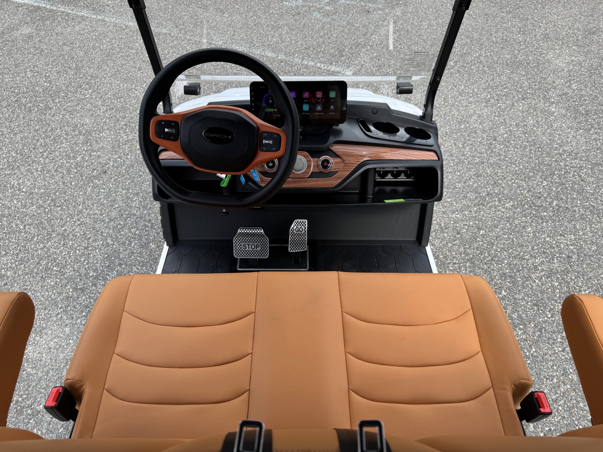 4 Passengers All Seats Facing Forward 73.6V 105AH LiFePO4 Battery and Charger Cruise Control & Intelligent Steering Wheel Automotive Level Monocoque Frame Entertaining Rooftop Tilt steering wheel Self Canceling turning signal Wireless Charging Acrylic Fold-Down Windshield Safety Belts Side Mirrors with Turn Signals Independent Double-Arm Suspension Rear Axle Trailing Arm & High-Strength Spring Shock Absorber One-Piece Double Coating Chassis 12.3-inch TFT LCD Touch Display Reverse Camera LED Front & Rear Light Kit Stereo Surround Sound System Bluetooth System USB & USB-C Connections