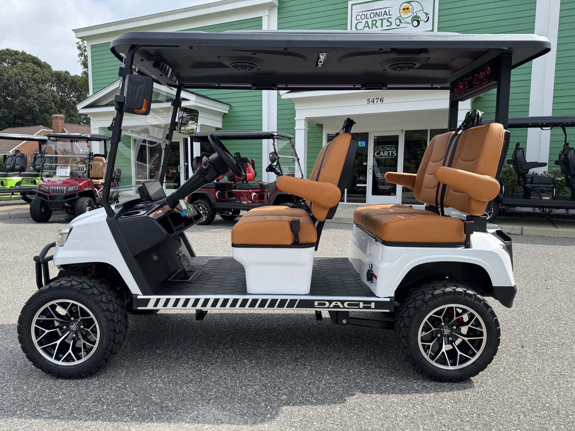 The Dach golf cart features a Monocoque Frame design, combining body and automotive