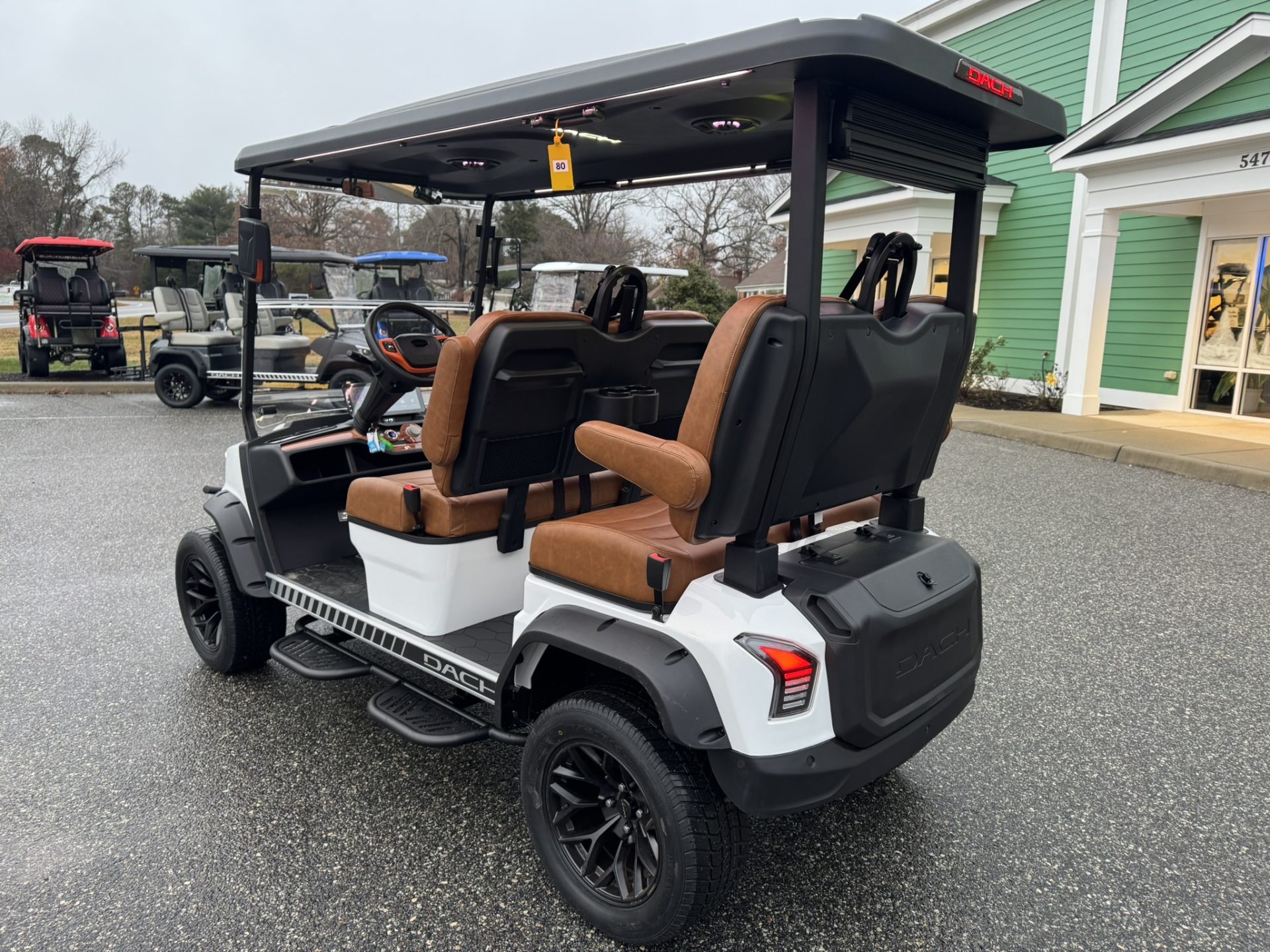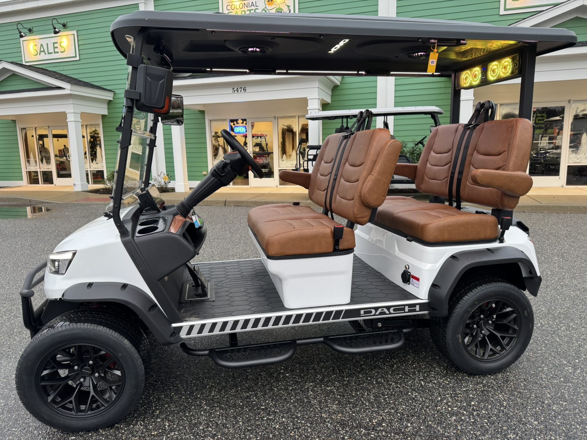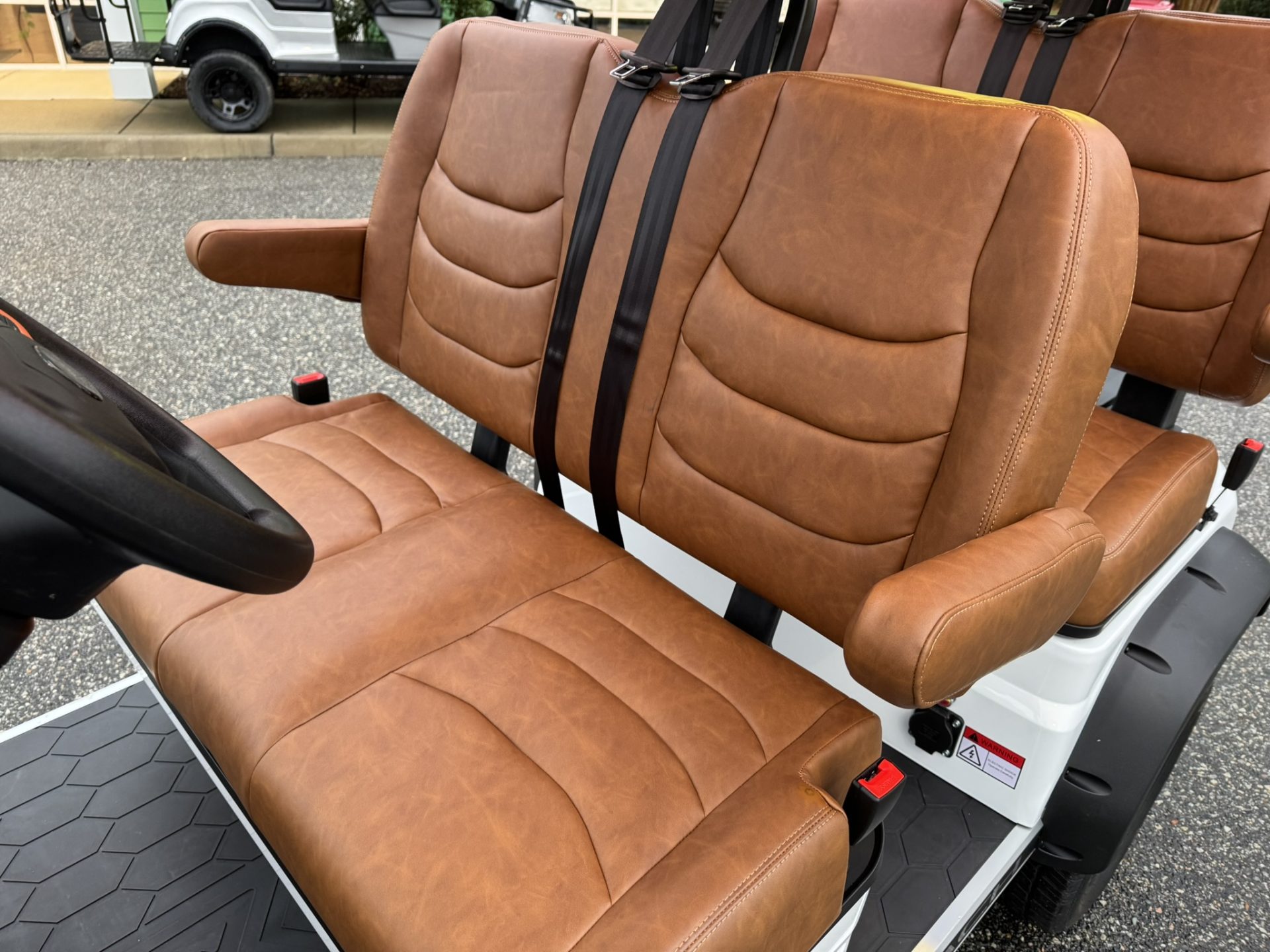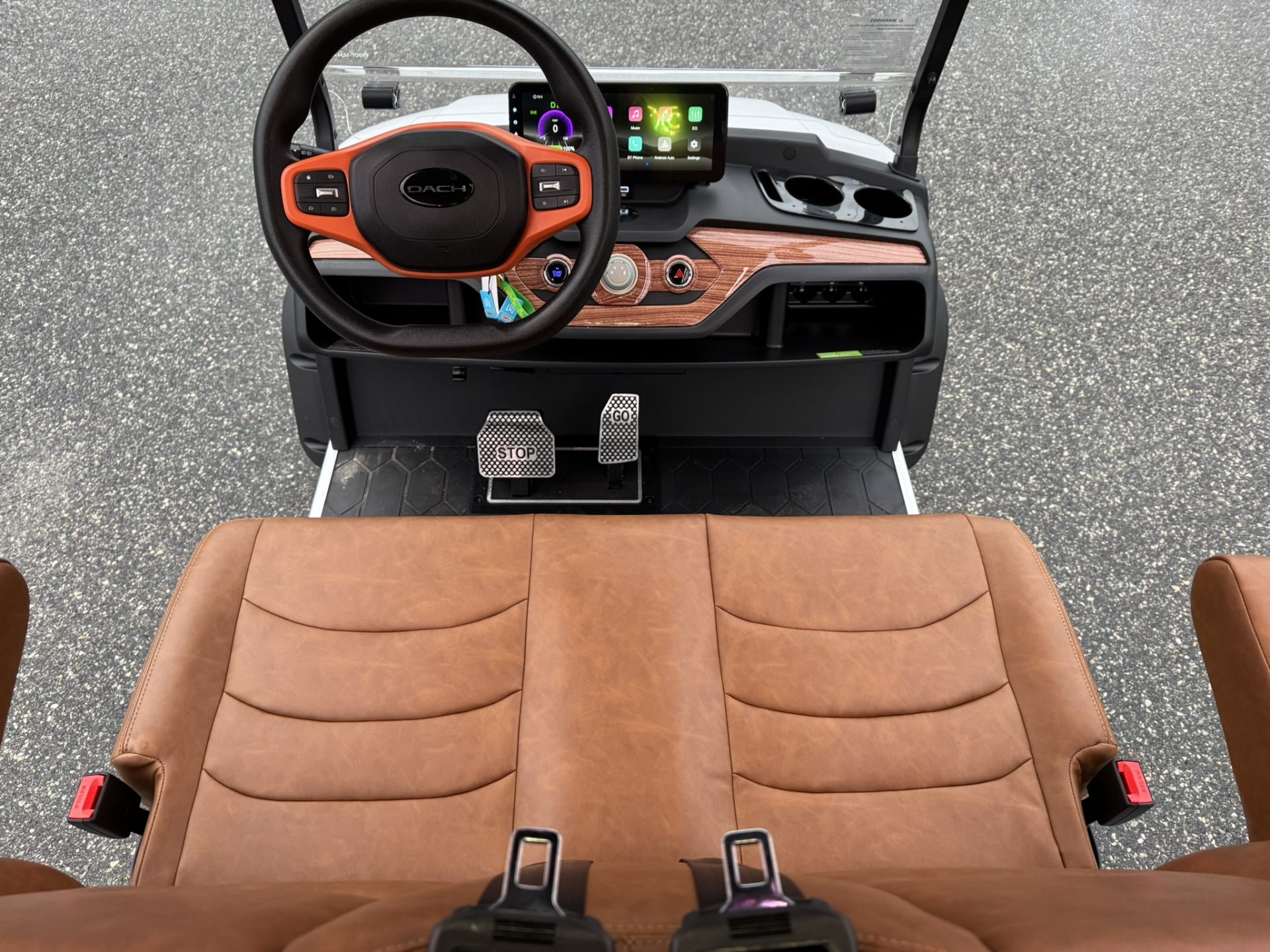 4 Passengers All Seats Facing Forward 73.6V 105AH LiFePO4 Battery and Charger Cruise Control & Intelligent Steering Wheel Automotive Level Monocoque Frame Entertaining Rooftop Tilt steering wheel Self Canceling turning signal Wireless Charging Acrylic Fold-Down Windshield Safety Belts Side Mirrors with Turn Signals Independent Double-Arm Suspension Rear Axle Trailing Arm & High-Strength Spring Shock Absorber One-Piece Double Coating Chassis 12.3-inch TFT LCD Touch Display Reverse Camera LED Front & Rear Light Kit Stereo Surround Sound System Bluetooth System USB & USB-C Connections