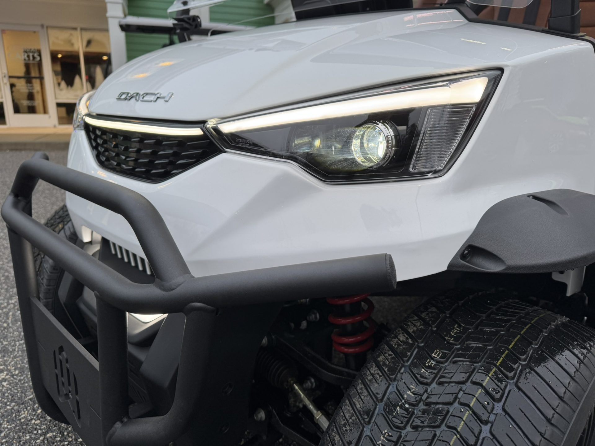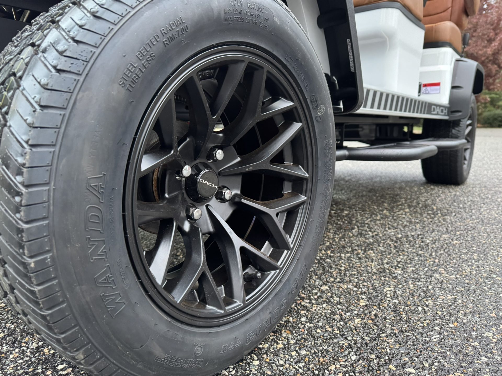 The Dach golf cart features a Monocoque Frame design, combining body and automotive