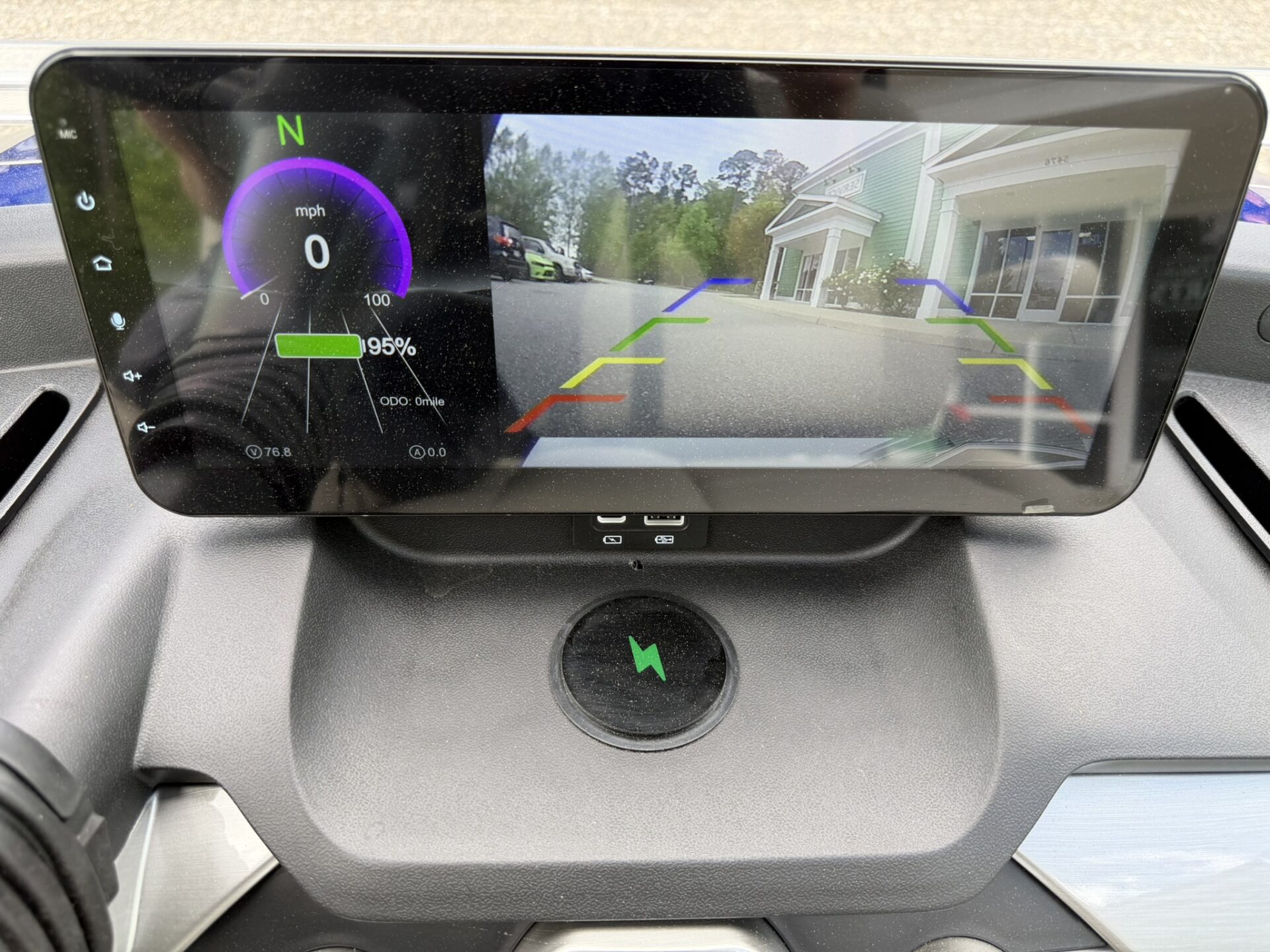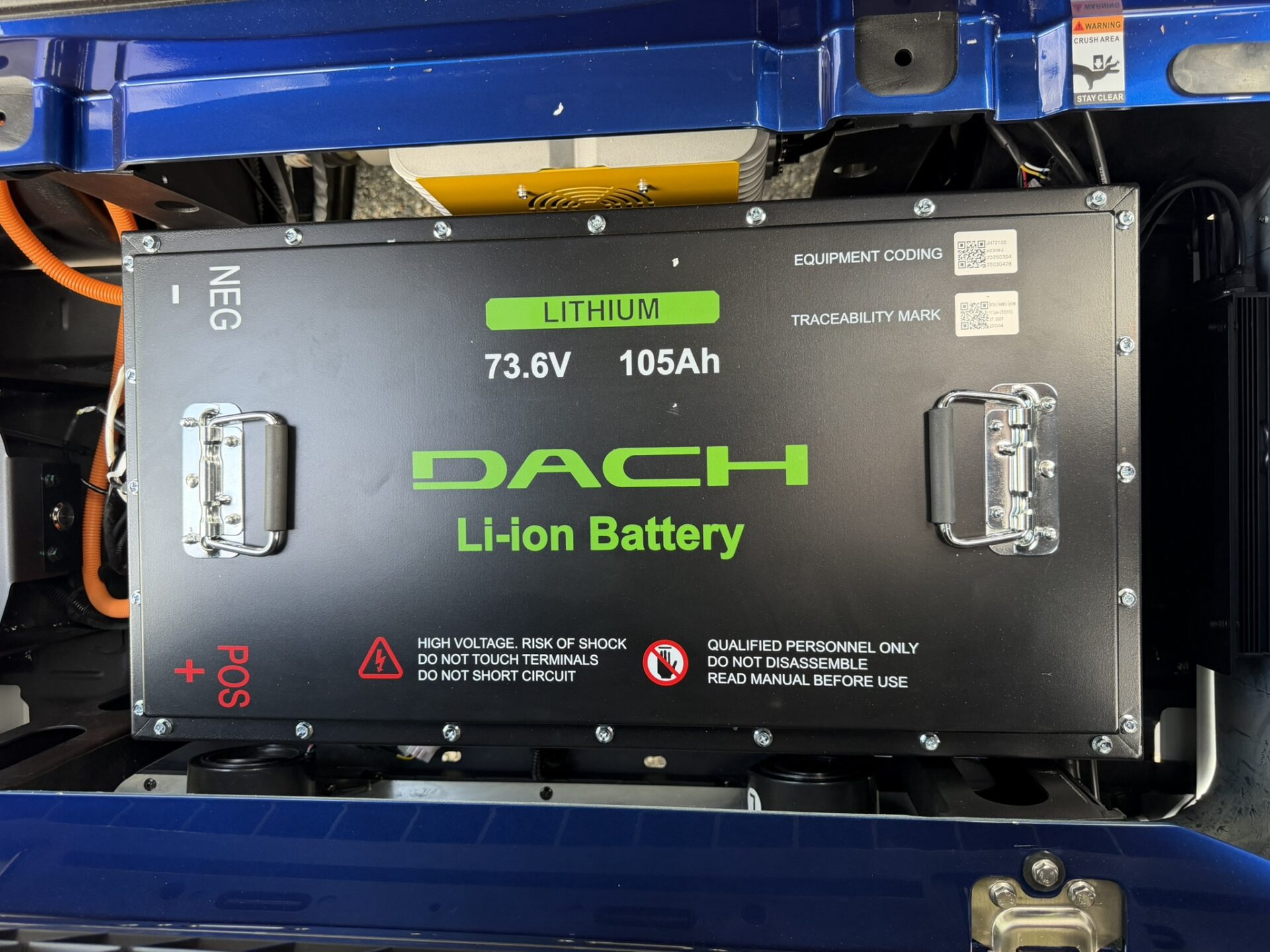 - Curb Weight 1212 lb - Overall Dimensions 114.2 x 54.7 x 80 in - Ground Clearance 5.7 in - Max Speed 25 mph - Travel Distance > 35 mi - Loading Capacity 661 lb - Wheel Base 67 in - Brake System : Front and rear hydraulic disc brakes with Automatic Parking / Emergency brake - Front Suspension: Double A-arm independent suspension + spiral spring + cylindrical hydraulic shock absorber - Rear Suspension Cast aluminum integral rear axle + trailing arm suspension + spring damping, ratio 16:1 - Tire 22/10-14, 225/30R14 - 72V 350A Controller - Battery 72V 105AH LiFePO4 - Motor 5KW Motor - On-board charger 72V 20A - DC Converter 48V/12V-500W